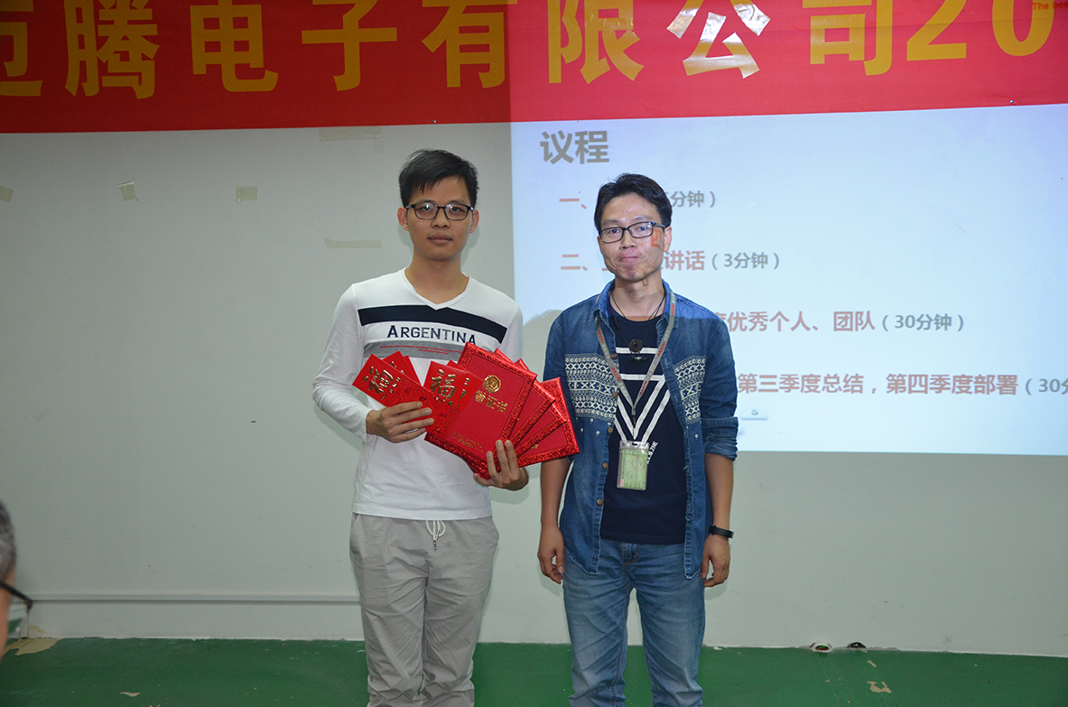 11月14日,8868体育电子2018年第三季度表彰大会在公司培训室隆重举行,深圳全体员工参加了此次会议。本次大会简要总结第三季度工作,并对优秀团队进行表彰,同时强调第四季度工作重点。